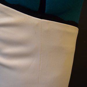Off-White Satin Strapless Dress with Peek-a-Boo Black Lace