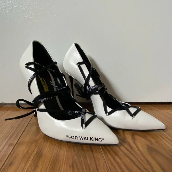 Off-White “for walking” white heels. Size IT 37, same as US 7. Bought used for $300 USD.