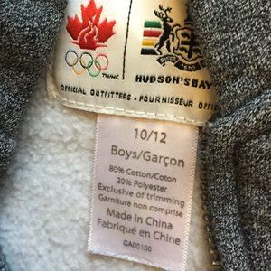 Hudson's Bay Official Canada 2010 Olympics Zip Hoodie Boy's Size 10/12 Gray Mélange