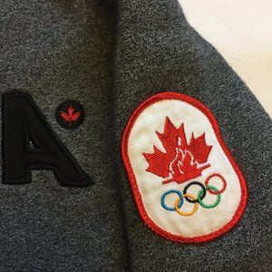 Boy's zip hoodie in gray mélange color with embroidered Canada and Olympics logo. Very good condition, gently used, no defects, clean and nice (see all photos).