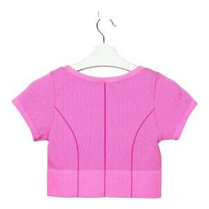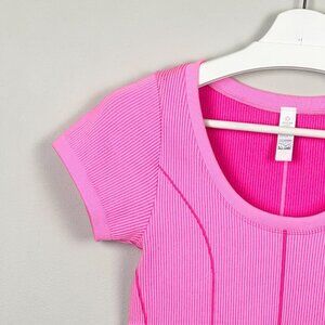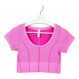 Offline by Aerie 2023 Superchill Seamless Corset Crop Top Pink. Super soft ribbed crop top. Scoop neck.Short sleeves. Wide waistband.Materials: 66% Nylon, 29% Polyester, 5% Elastane. Lots of stretch. Excellent condition. No known flaws.