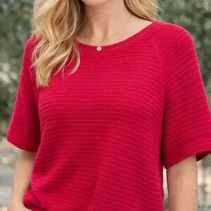 Effortless off-the-shoulder style in a soft ribbed knit. Bright red color adds a bold, versatile pop to any outfit. Lightweight and comfortable for all-day wear. Designed with a relaxed fit for easy layering and movement.