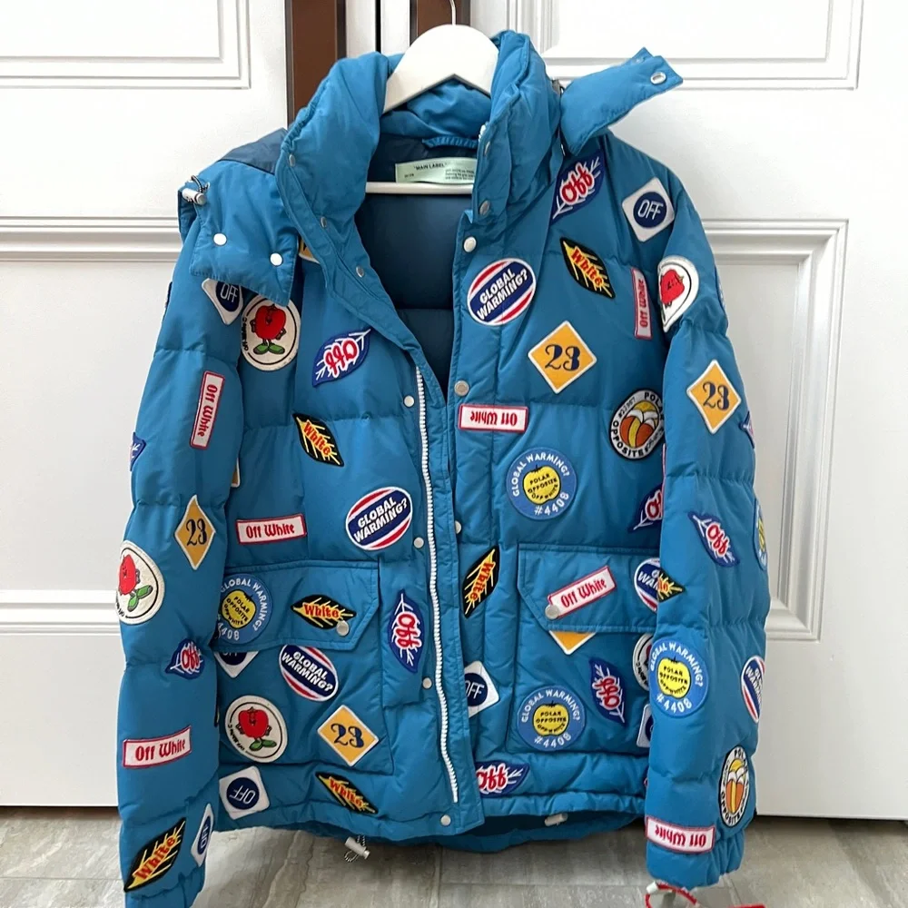 Off white parka with patches