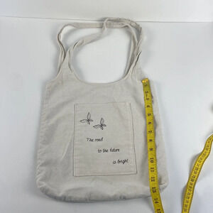 Off-white cotton canvas the future is bright printed book shoulder bag purse