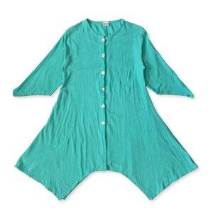 Oh My Gauze! Button Up Teal Tunic Short Dress Handkerchief Whimsical Lagenlook