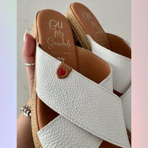 Effortlessly stylish, these Oh! My Sandals feature wide crisscross white leather straps and a comfortable chunky heel design. Crafted in Spain with eco-friendly materials, they combine a fresh, modern look with all-day wearability.
