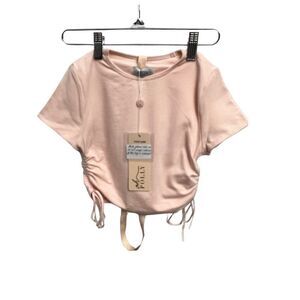 Short sleeve top with ruched sides Colour: blush Stretch fabric