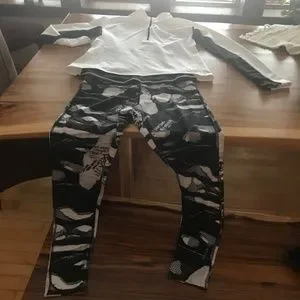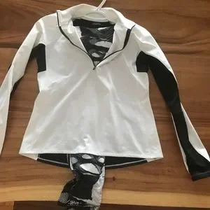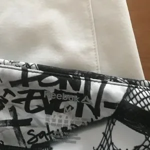Comfort can be found is this beautiful black and white sporty combo. A gorgeous pair of Reebok leggings size medium along with a Ohydrolix brand top in large. Back side has a discreet black mesh. You can choose to wear in fall with sneakers or sandals this summer.