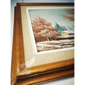 In good vintage condition frame has some patch work as seen in photos and is structurally sound. Canvas and painting in good condition please reference detailed photos as part of the description.
