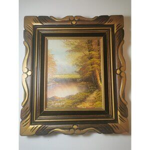 Oil Painting Signed J. Green Guilded Wood Frame Black Velvet Trim Vintage 1950s