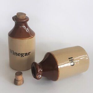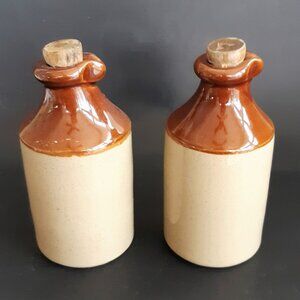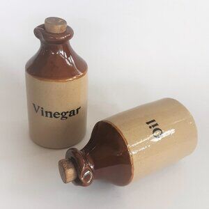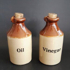 Oil & Vinegar Cruets Crocks Chesterfield Stoneware Made in England VTG 1930-50s