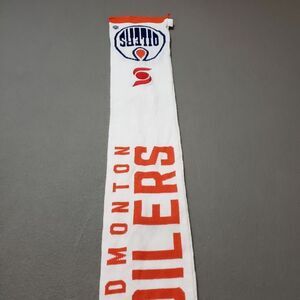 Show your support with this stylish Oilers scarf. Featuring bold white, blue and orange colors, it's perfect for any fan.