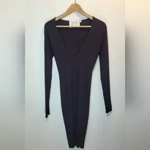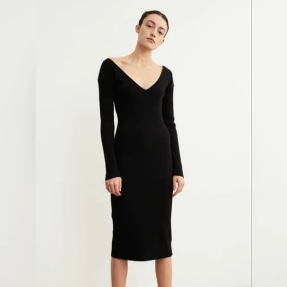 Waves of ribs delineate the shores of the body in our fitted long-sleeve dress, finished with a sweeping V-neckline.