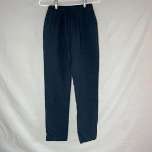 Midrise navy cotton pant, feels like linen, two front pockets, size small