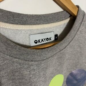 Learn more about the brand here : https://okayok.ca/collections/sweatshirts - dots no longer available, but they have confetti that is same sweater.