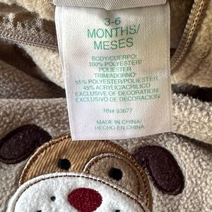 Cozy sleep sack/bunting bag and one piece coverall with cute puppy design. Soft and warm for comfort on cold days.
