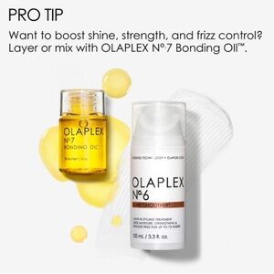 -For extra smoothness and shine, mix a few drops of Olaplex No.7 Bonding Oil (sold separately) with a pea-size amount of No.6 Bond Smoother and apply to damp hair before styling.