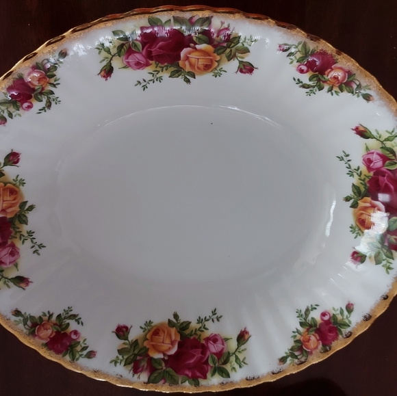 Old Country Roses 9" oval serving bowl. Mint condition, never used. Stamped "1962 Made in England"