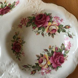 Old Foley James Kent Staffordshire England 3 Compartment serving dish roses