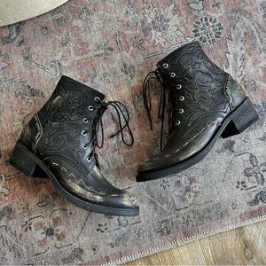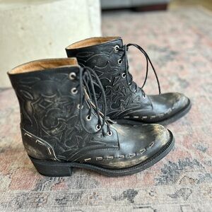 Old Gringo OG Lace-Up Leather Boots Size 7.5 Distressed Black