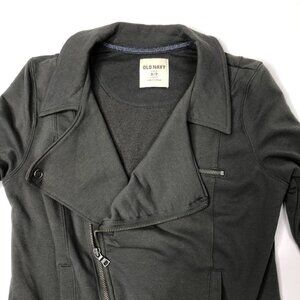 Old NAVY Smokey Grey Moto Asymmetrical Zipup Stretchy Pocket Sweater Jacket Coat