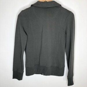 Old Navy charcoal grey moto style asymmetrical zip-up cotton jacket coat. The fabric is soft and medium weight. Inside is a short micro fleece. It would remind you of a sweatshirt material so it’s super comfy to wear and has stretch! The cuffs and bottom hem are ribbed texture. There are three pockets on the front and one is a zippered pocket. Great for the Fall and back to school. In excellent used condition with no flaws (worn once). Please see photos for measurements and details. Women’s size SMALL.