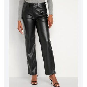 New with Tag, Old Navy High Waist OG Loose Black Faux Leather Pants Sz Petite 6. 5 pocket style, Straight Leg, belt loops.