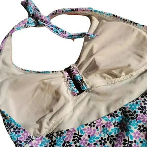 Old Navy 2 piece Tankini size medium Black turquoise print neck ties