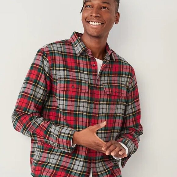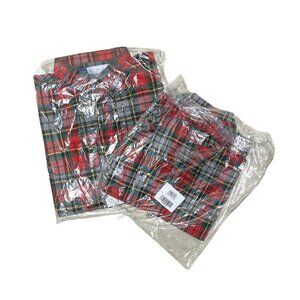 Old Navy 2-Piece Set Built-In Flex Flannel Utility Pocket Shirt Red Tartan Plaid