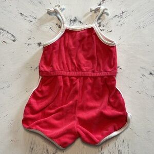 Old Navy 3T Terry Cloth Romper. Pinky-red in colour with white trim. Wonderful faux ties that don’t come undone. Excellent condition.