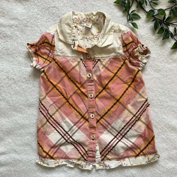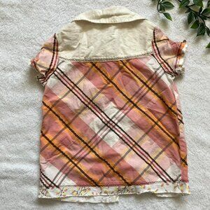 Old Navy 3T Toddler Button-Up Shirt | Pink & Orange Plaid Floral | GUC