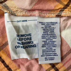 Old Navy button-up shirt for toddlers, size 3T. A cheerful pink and orange plaid with subtle floral accents - soft, lightweight cotton blend perfect for spring, fall, or layered winter wear. Classic collar and button front.