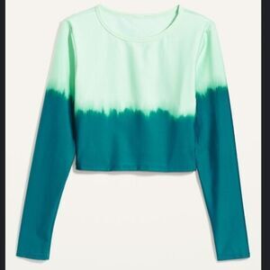 Rashguard long sleeved crop dip dye cool tones swim top, brand new unworn, from Old Navy. Built in padded bralette.