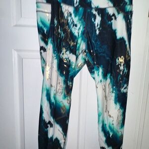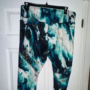 Old Navy 3XL Yoga Pants – Turquoise, Gold, White, Black & Blue Pattern