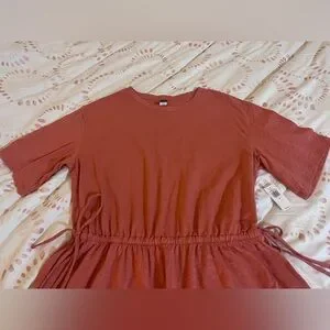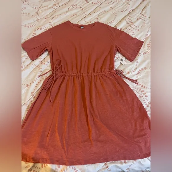 Elevate your wardrobe with this casual rust dress. Featuring a comfortable fit and stylish waist tie, it's perfect for any occasion.