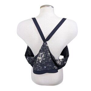 Upgrade your activewear collection with the Old Navy Powersoft Go Dry sports bra, designed with both form and function in mind. The sleek black with white splatter pattern adds a touch of style to your workout wardrobe, while the padded cups offer full coverage and medium support, suitable for a variety of performance activities from athleisure to yoga. Crafted for comfort, this bra features a stretch blended fabric that wicks moisture away, keeping you dry as you move. The racerback design allows for freedom of movement, and the pullover closure ensures easy wear. Machine washable for convenient care, this wireless sports bra is a dependable piece for your active lifestyle.