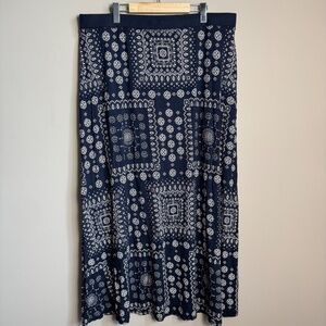 Old Navy Aztec Print Maxi Skirt Navy XL Bohemian Elastic Waist Unlined Festival