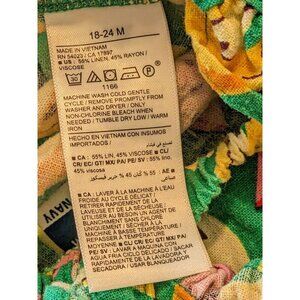This Old Navy Baby Girl 12-18M Banana Watermelon Linen Bubble Short Romper is a colorful and playful one-piece outfit perfect for a casual occasion. The sleeveless romper features a fun fruit print with a watermelon theme, making it ideal for the summer season. Made from a blend of rayon and linen, the romper is comfortable and stylish with ruffle accents adding a cute touch. With a snap closure and stretch waist, this romper is both practical and easy to dress your little one in.