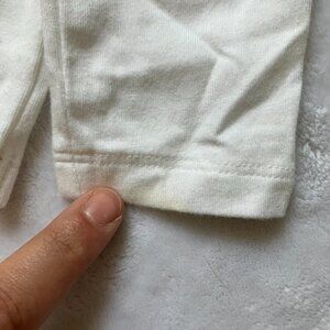 Bundle of 3 Old Navy baby girl leggings, size 6-12 months. Material: 96% cotton, 4% spandex/elastane. All the same style with ruffle detail on the bum: grey, light pink, and white.