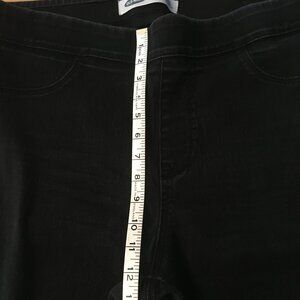 Good preowned condition, black denim, super skinny, mid-rise jeans by Old Navy. Features 2 pockets on front and 2 on the back. Somw wear onthe groin, but otherwise good.