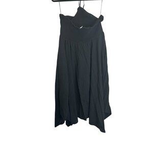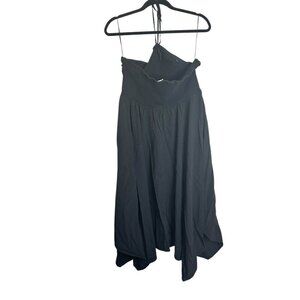 Old Navy Black Fit & Flare Crinkled Halter Midi Dress Handkerchief Hem Sz XXL