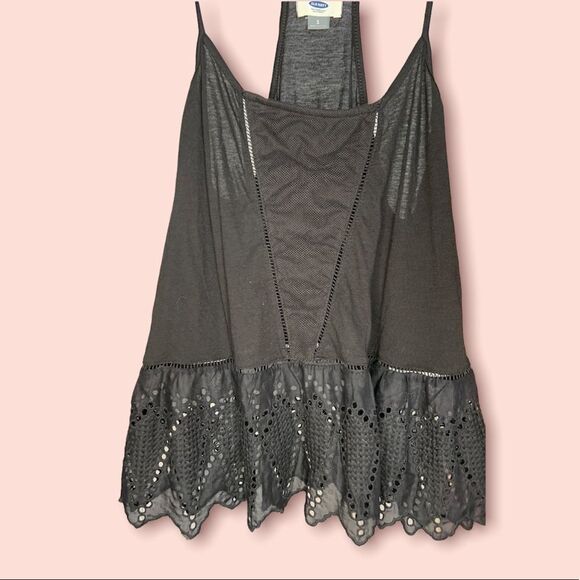 ✨solid black top with black mesh detailing in the shape of a triangle on the front (back of mesh is lined switch solid fabric)
