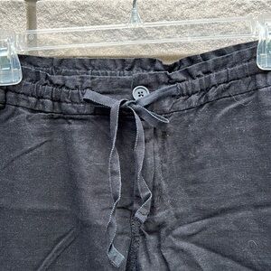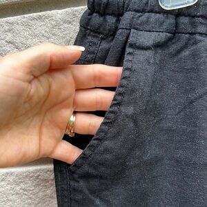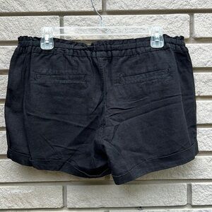 Linen blend short from Old Navy. High waisted with 2 side slip pockets and 2 slip back pockets (these are still sewn shut). Cuffed hem. Elasticized waist and functional drawstring. 55% linen, 45% rayon.