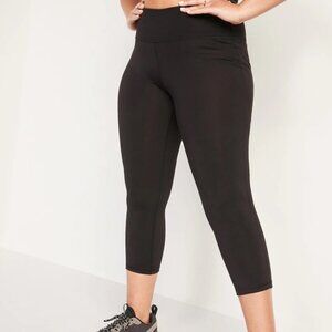 Old Navy Black Power Press Crop Leggings Small Compression Stretch Sweat Wicking