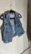 Sleeveless denim vest. Classic button-front design. Two chest pockets.