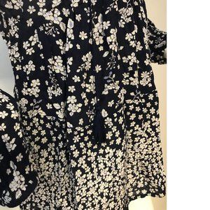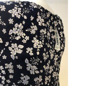 NWT Cute dark blue blouse with white/ lilac flowers, flowy and perfect for Summer!