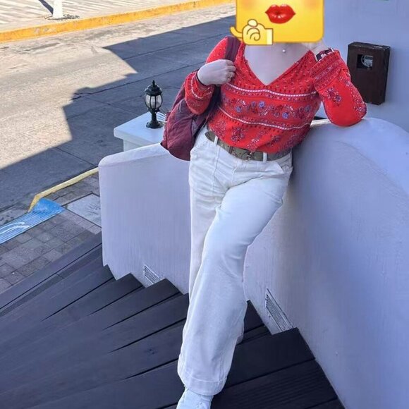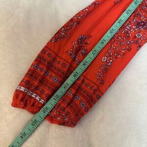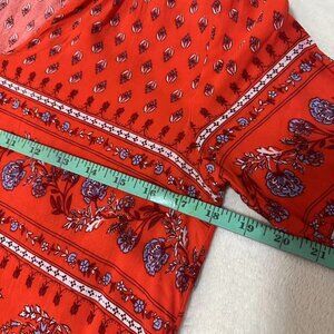 This vibrant Old Navy top in size M features a beautiful bohemian floral print in rich red and purple tones. Lightweight and breathable, it’s perfect for travel, casual outings, or warm-weather adventures. Worn only once, it’s in excellent condition。