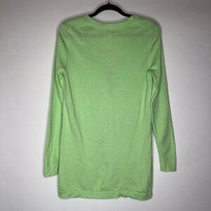 Old Navy long sweater cardigan in a bright, fun and funky bright lime green color. It has two pockets on the font. Such a cute sweater paired with a pair of distressed skinny jeans. In excellent condition with only one flaw which is a small stain under the last button (see last photo). It is not very noticeable as it is on the bottom and under the button. Please see photos for measurements and details. Women's size MEDIUM.