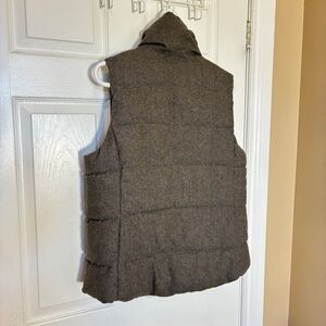 Stay cozy and stylish with this Old Navy quilted puffer vest in a rich brown shade. Features snap-button closure, high collar for extra warmth, and two front pockets. Perfect for layering during fall and winter!