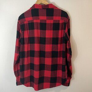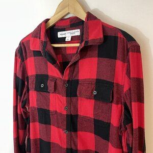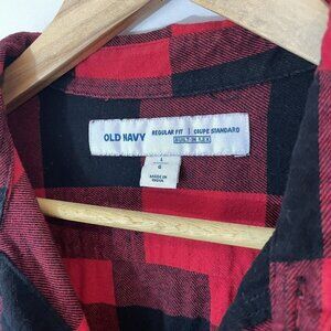 Old Navy Buffalo Plaid Flannel Shirt Womens L Red Black Regular Fit Button Up